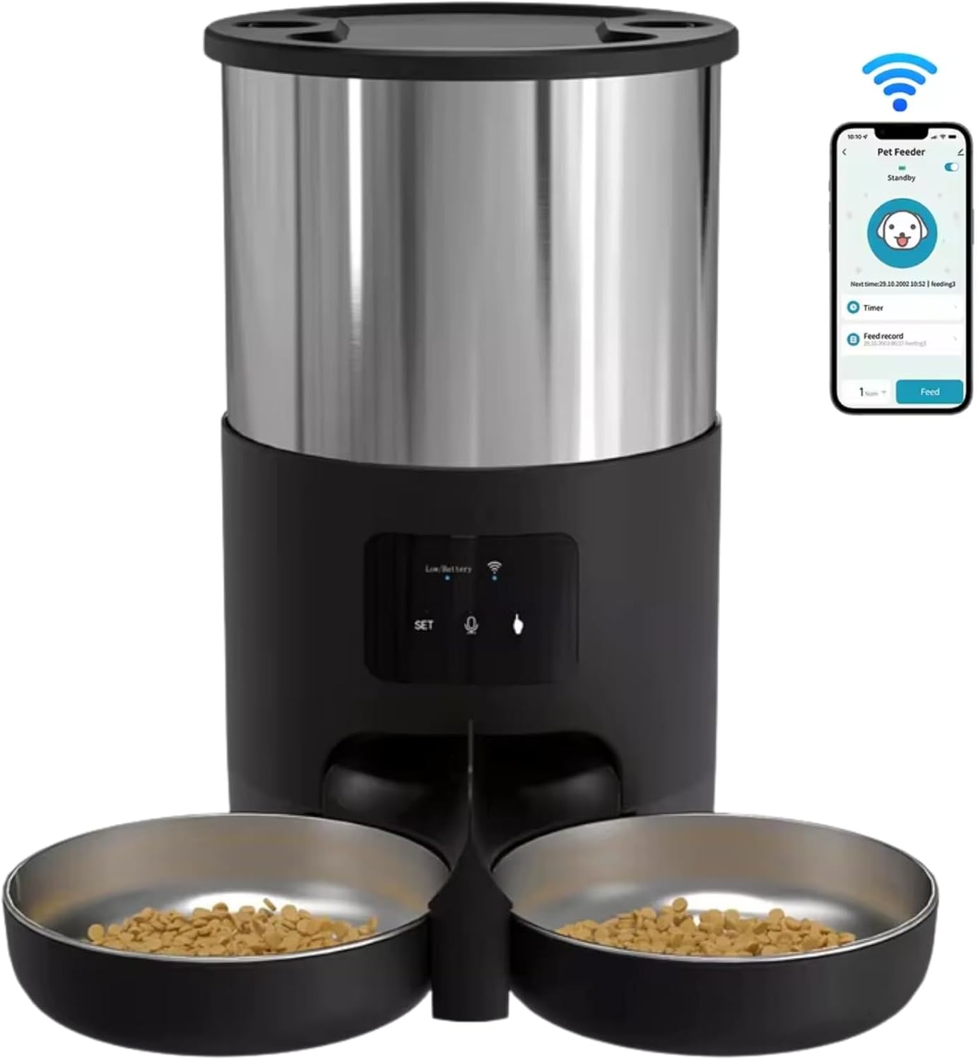Se você é um dono de pet preocupado com a alimentação e bem-estar do seu animal de estimação, o Alimentador Automático 5L Duplo PETYC WiFi é a solução perfeita para você. Com capacidade para até 5 litros de ração, esse dispensador inteligente é ideal para gatos e cães, permitindo que você controle a alimentação do seu pet de forma prática e eficiente. Com a possibilidade de controle via aplicativo, você pode programar horários e quantidades de comida, garantindo que seu animal esteja sempre bem alimentado, mesmo quando você não está em casa.