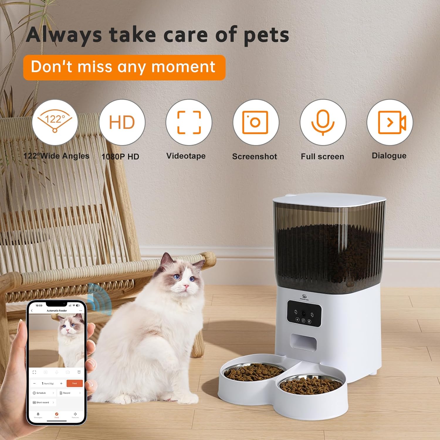- Monitoramento em tempo real: A câmera integrada de 1080P HD com visão noturna permite que você acompanhe seus gatos mesmo estando longe de casa. Com o aplicativo móvel, você pode verificar se estão bem, se estão se alimentando corretamente e até mesmo interagir com eles por meio do áudio bidirecional.