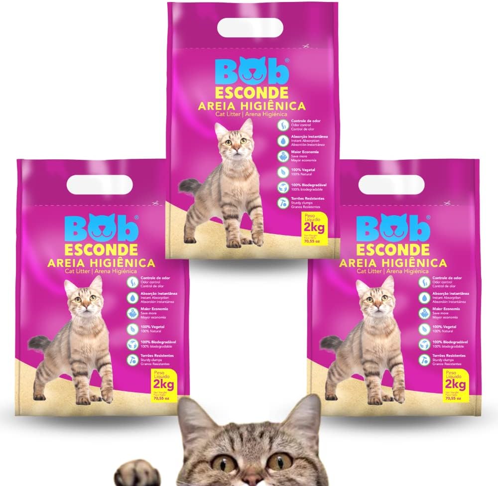 Areia Higiênica Para Gato de Mandioca Bob Esconde – Areia de Gato Kit 3 un.