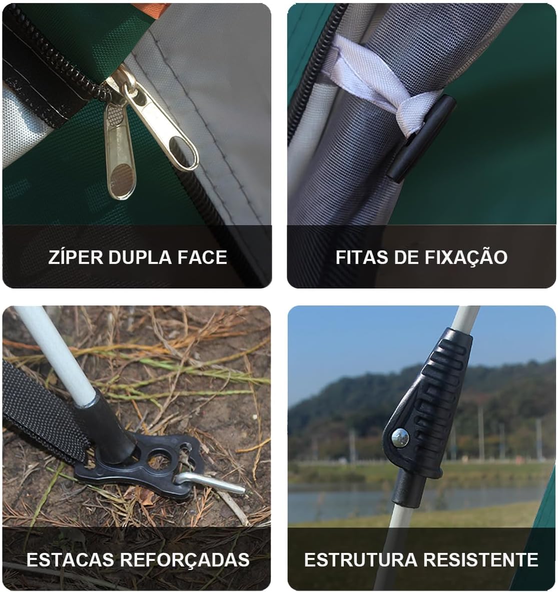 - Durável e resistente: Fabricada com materiais de alta qualidade, como tecido de poliéster impermeável e armação de fibra de vidro, essa barraca é resistente a chuvas e ventos fortes. Assim, você pode desfrutar de suas aventuras sem se preocupar com as condições climáticas.