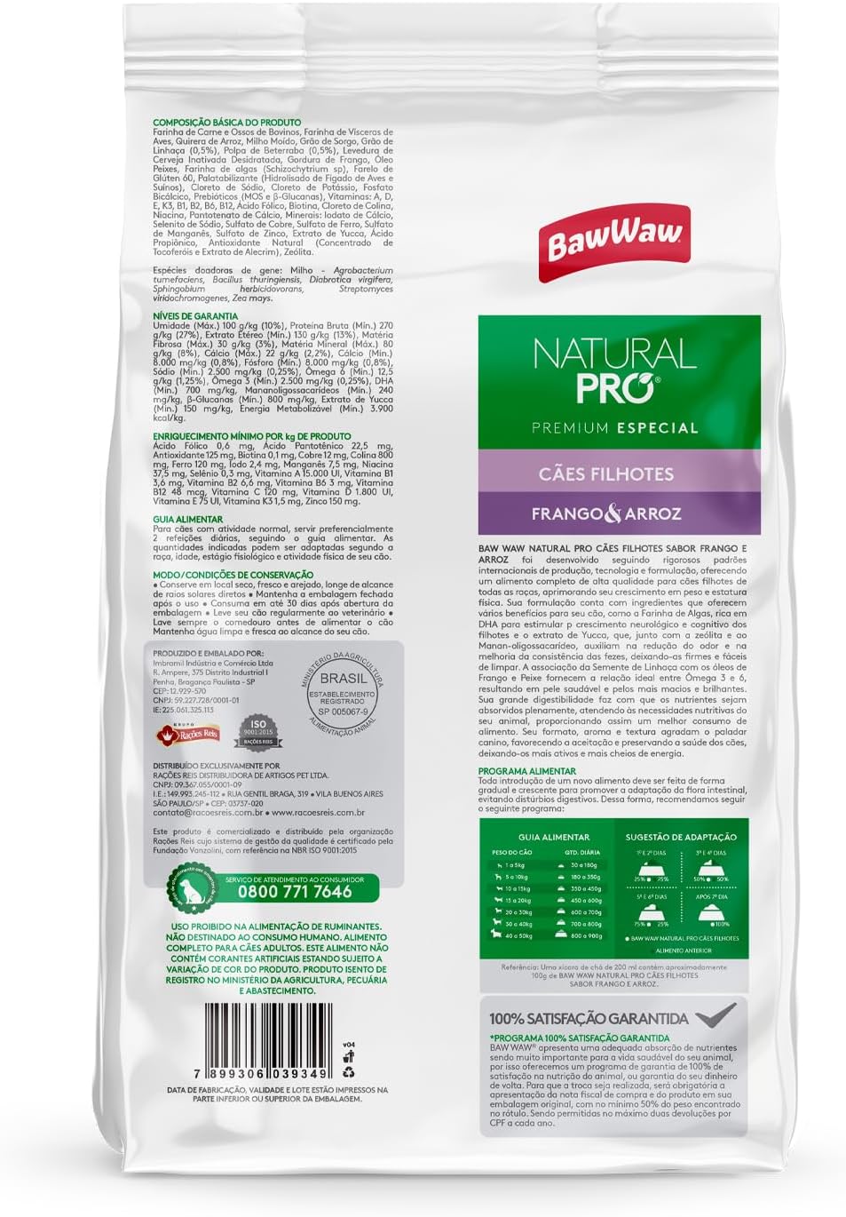- Ingredientes naturais: A ração Baw Waw Natural Pro é formulada com ingredientes naturais de alta qualidade, sem corantes artificiais ou conservantes, garantindo uma alimentação saudável e balanceada para o seu filhote.