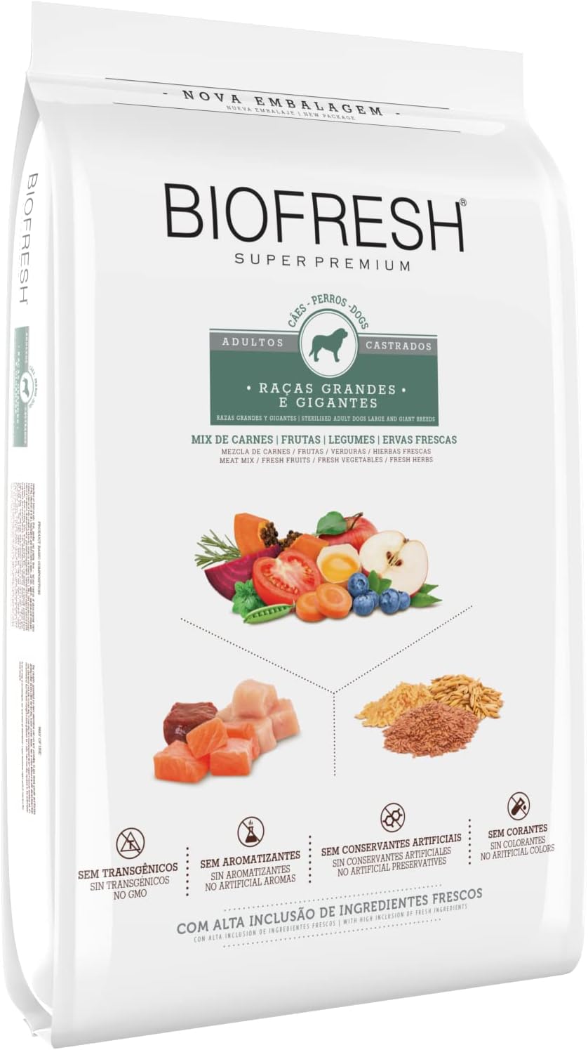 - Sabor Irresistível: Seu cão vai adorar o sabor irresistível da Biofresh Ração Super Premium Castrado Grande E Gigante, tornando as refeições ainda mais prazerosas.
