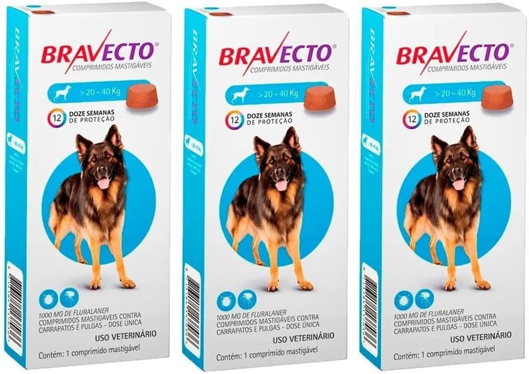 Combo 3 Bravectos Cães De 20 Kg A 40 Kg