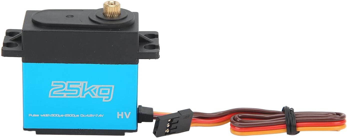 - Alta torção: Com uma capacidade de 25 kg, este servo é capaz de lidar com cargas pesadas e oferecer um desempenho consistente e preciso em todas as situações. Seja movendo a esteira de um tanque RC ou controlando o braço de um robô, este servo é capaz de lidar com qualquer desafio.