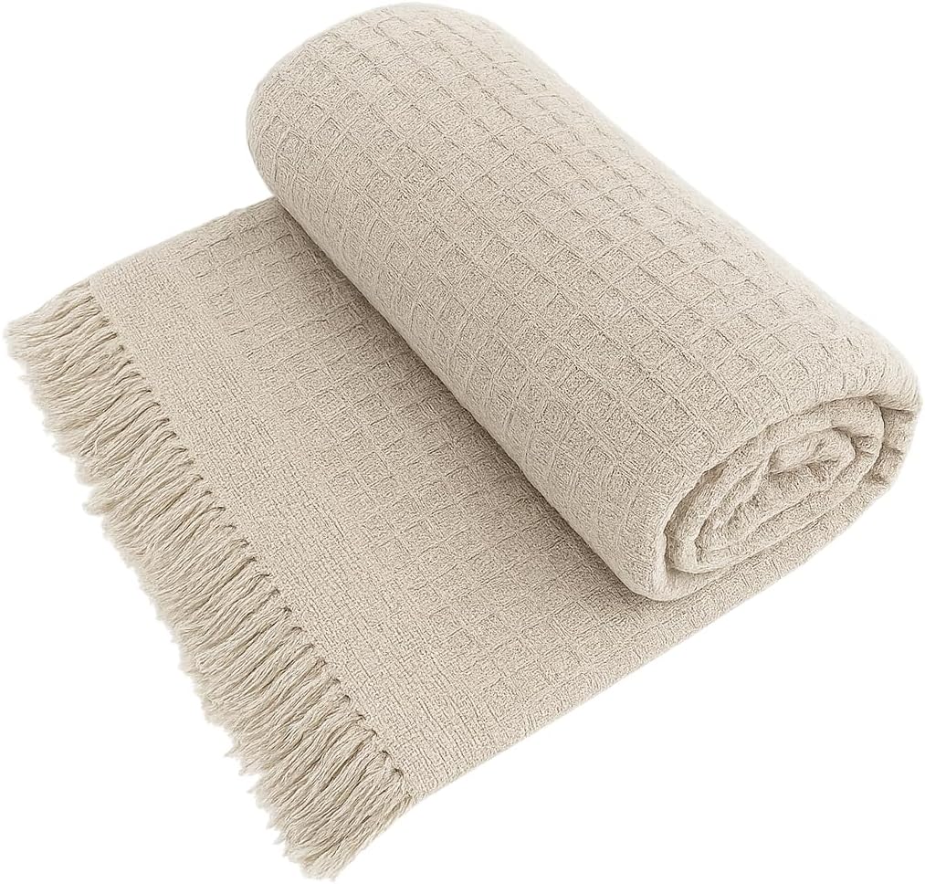 Decolab Manta para Sofá em Algodão com Franjas Artesanais