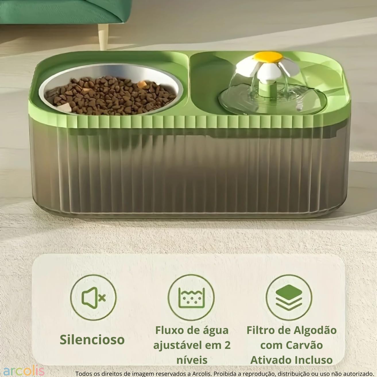 - Bem-Estar e Saúde do seu Pet: Ao garantir que seu cão ou gato tenha acesso à água e ração sempre frescas, você contribui para a saúde e o bem-estar do seu animal de estimação. Com este dispenser automático, seu pet estará sempre bem alimentado e hidratado, o que é essencial para sua qualidade de vida.
