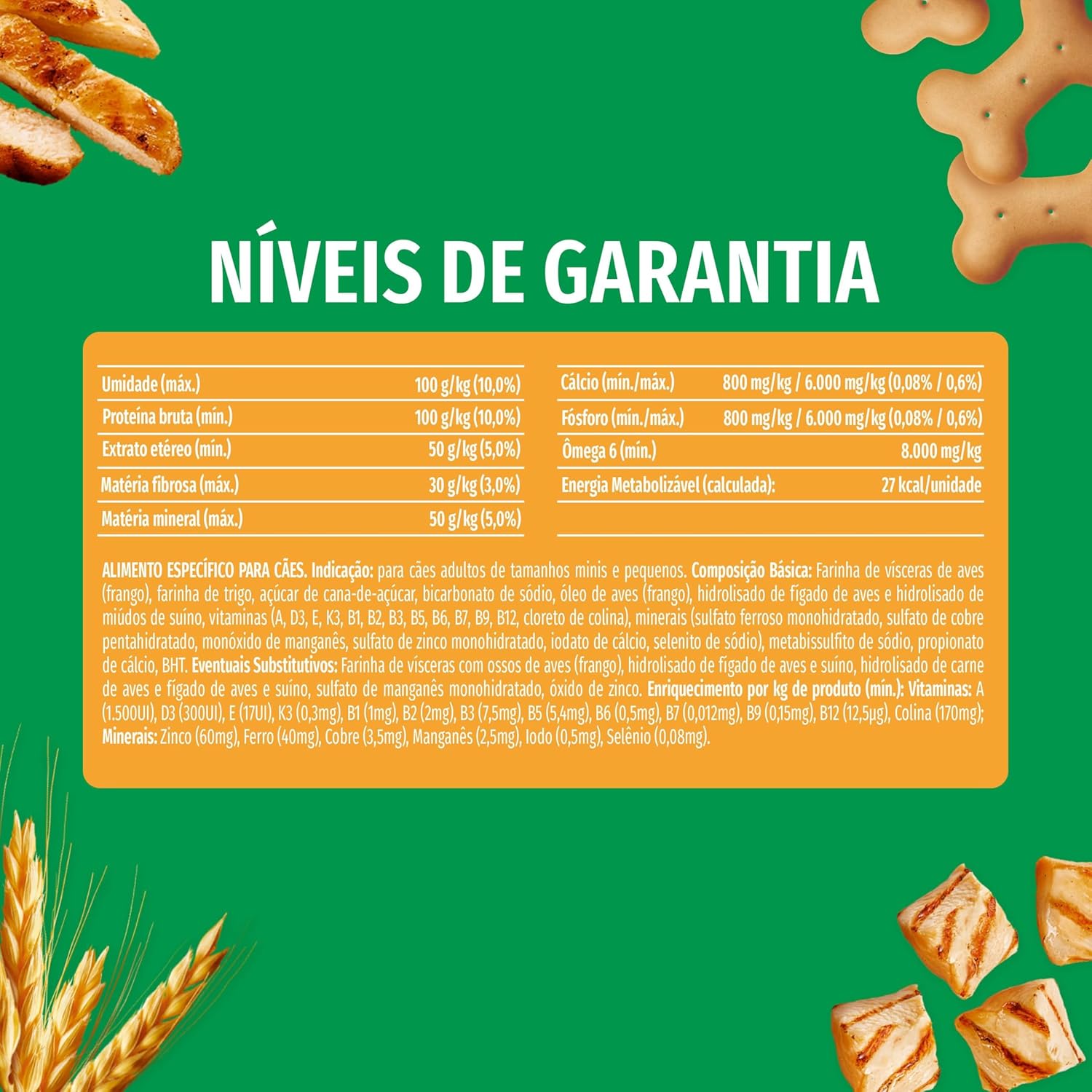 - Sabor irresistível: Seu cão vai adorar o sabor de frango desses biscoitos, tornando-os o petisco perfeito para treinamentos e agrados no dia a dia.