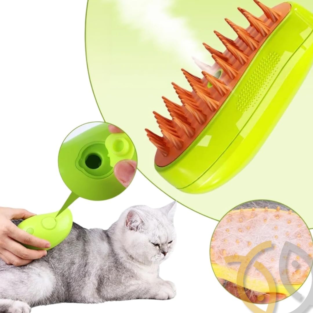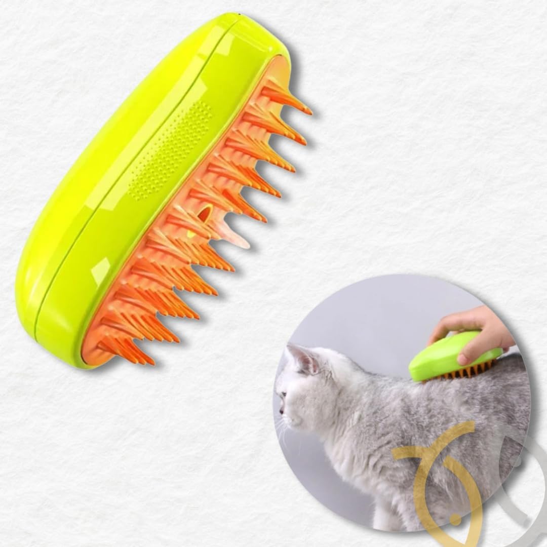 Escova Removedora de Pelos a Vapor USB para Cães e Gatos Pet – Praticidade e Conforto para Seu Pet (Amarelo)