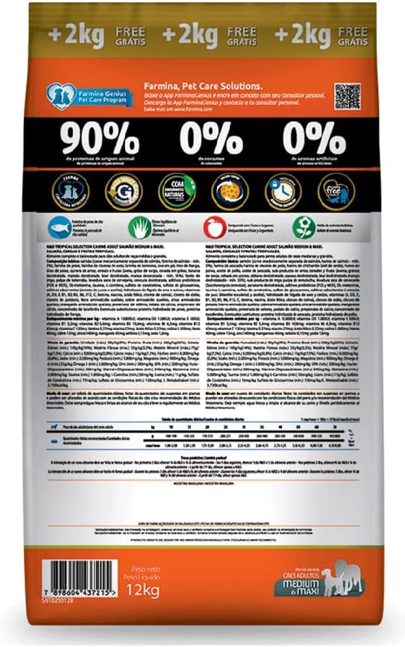 A Farmina N&D Tropical para Cães Adultos de Raças Médias e Grandes Sabor Salmão, Cereais e Frutas Tropicais é uma opção de alta qualidade para manter a saúde e o bem-estar do seu pet. Com um sabor irresistível e ingredientes selecionados, essa ração oferece uma alimentação balanceada e nutritiva para cães de raças médias e grandes.