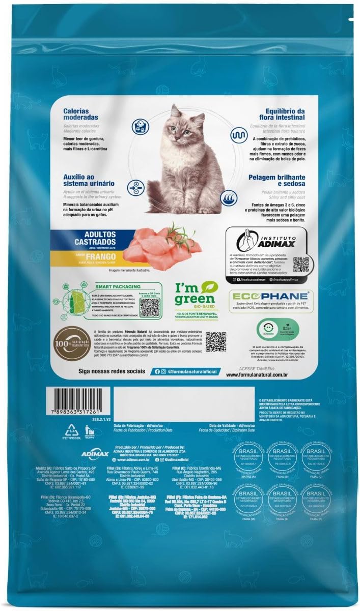 Fórmula Natural Ração Super Premium Gatos Castrados Adultos Frango – 1Kg