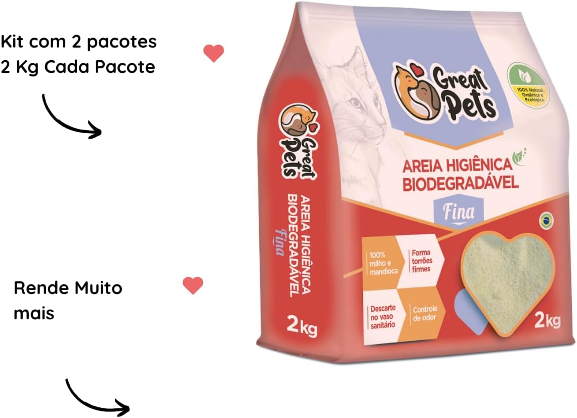CTA: “Invista em durabilidade e eficiência com o Kit 2 Areias Para Gatos Biodegradável Milho Mandioca 4kg (Grossa) e proporcione o melhor para o seu pet!”