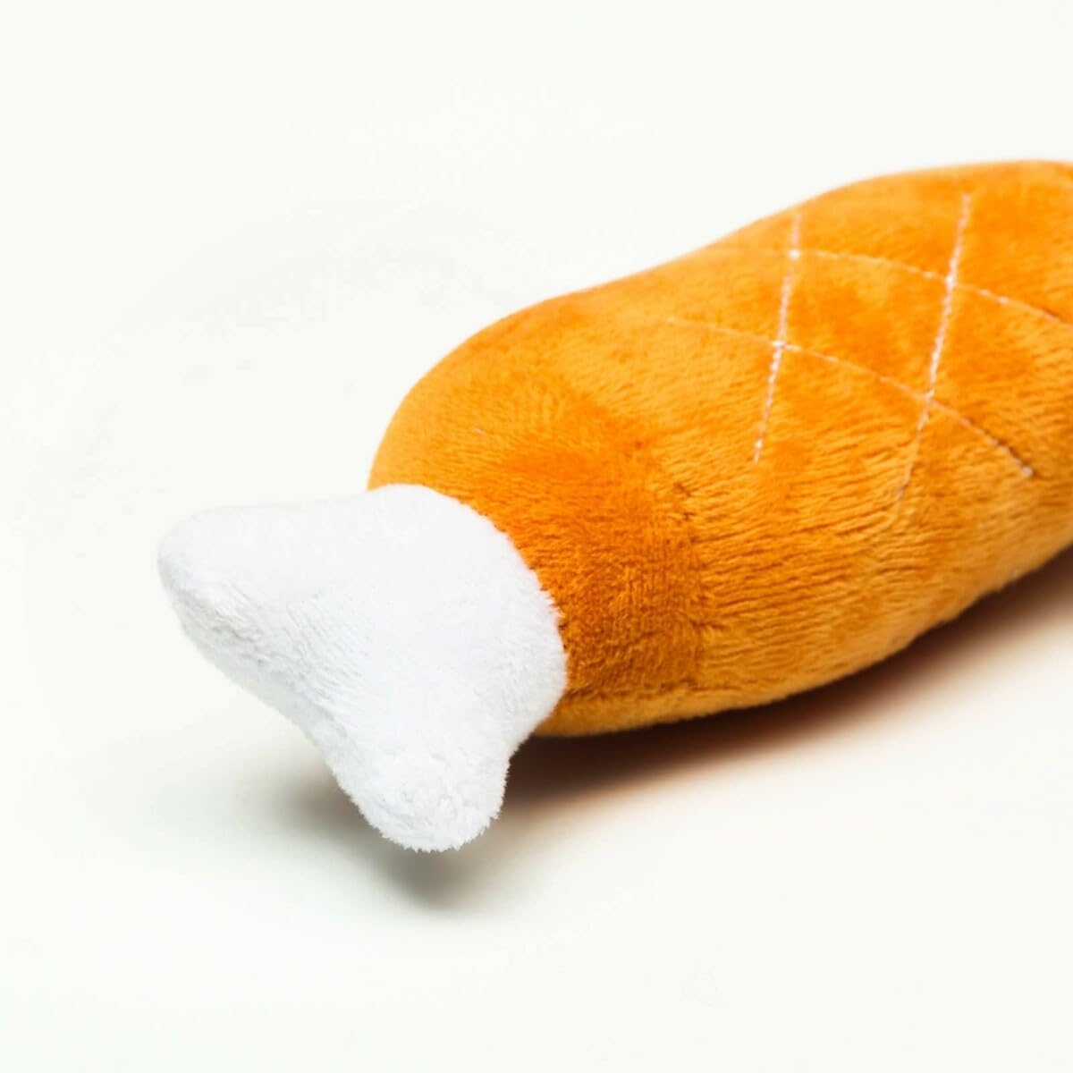 - Coxa de frango: O apito embutido no formato de coxa de frango vai despertar o instinto de caça do seu pet, tornando a brincadeira ainda mais divertida e estimulante.