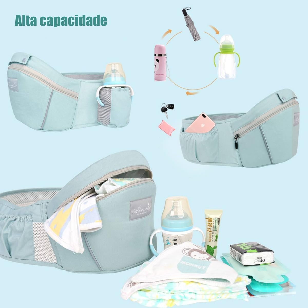 - Design Moderno e Estiloso: Com um design moderno e elegante em tom de azul, essa mochila canguru é perfeita para pais que buscam um acessório funcional e estiloso. Com ela, você pode sair para passear com seu bebê com muito mais estilo e praticidade.
