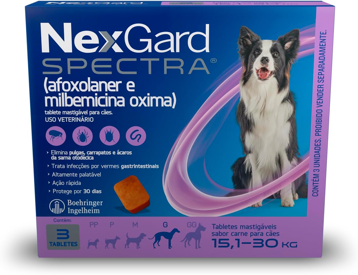 - Seguro e confiável: NexGard Spectra é seguro para cães de 15,1 a 30kg, proporcionando tranquilidade para os tutores.