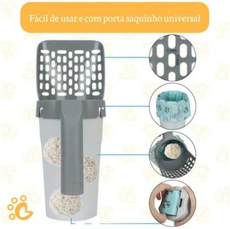 - Compatível com diferentes tipos de areia: A Pá Coletora Com Dispenser Areia Gato Pet Com Saco Cata Caca é compatível com diversos tipos de areia sanitária, proporcionando versatilidade e praticidade para os donos de gatos.