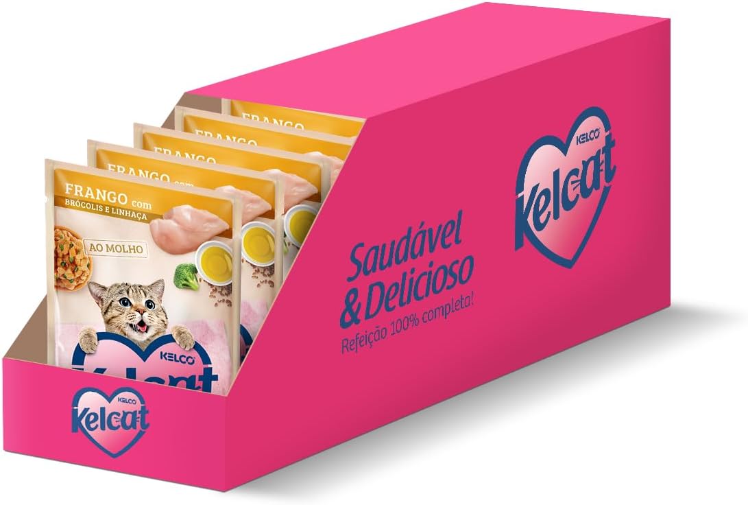 Pack de Ração Úmida Gatos Kelcat Frango, Brócolis e Linhaça – 20 unidades 85g