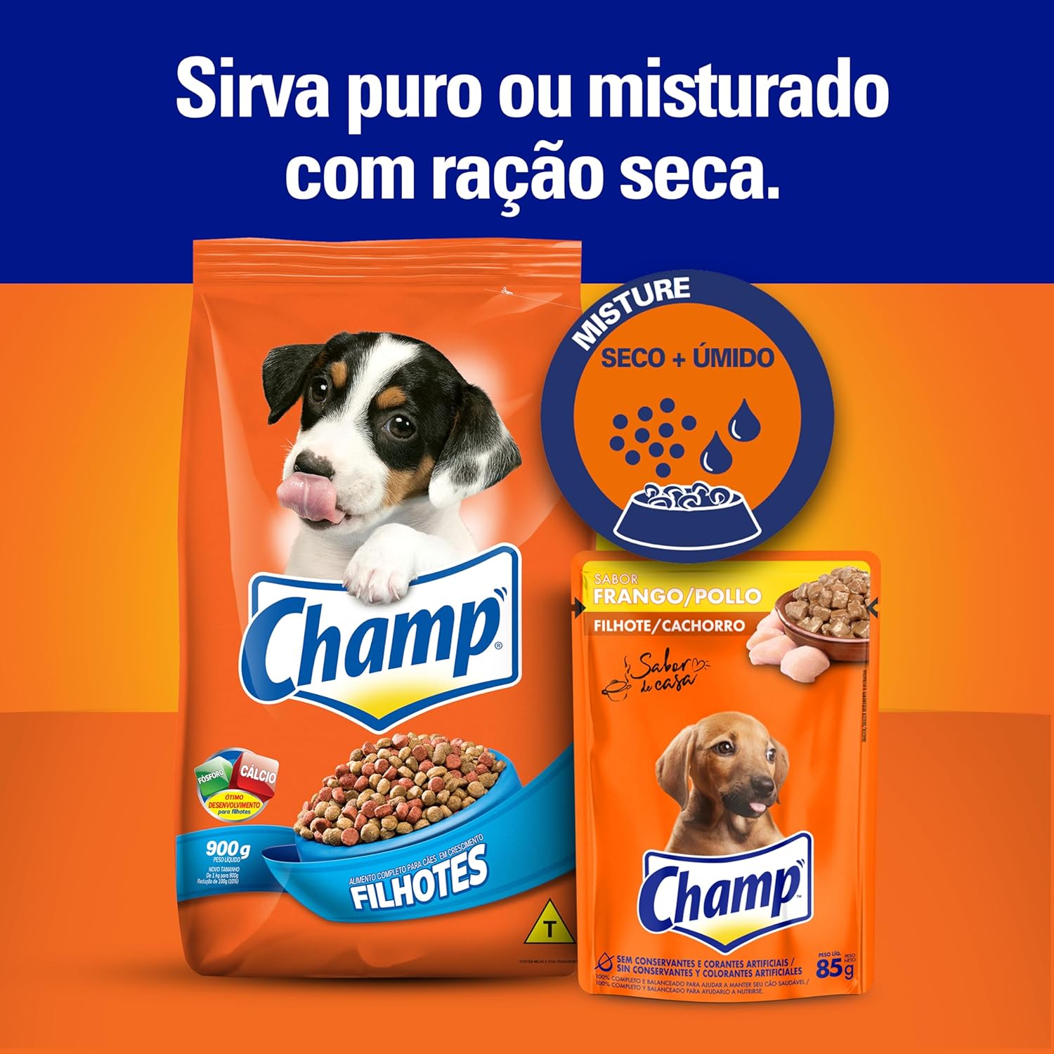 - Variedade de sabores: Além do sabor de frango, o Pack Ração Úmida Champ Sachê oferece outras opções para variar a dieta do seu filhote.