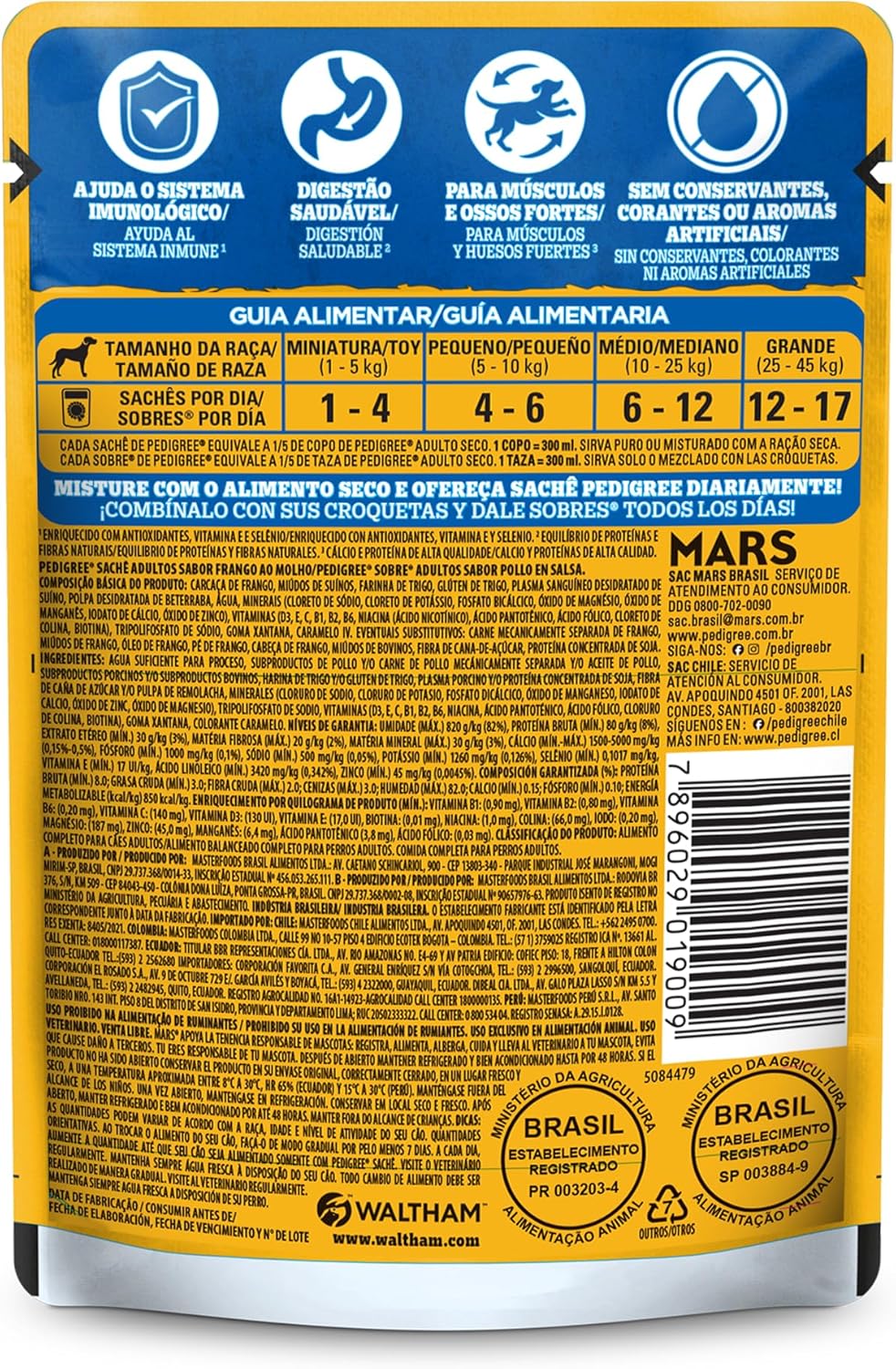 Conservar em local seco e fresco. Após aberto manter refrigerado e bem condicionado por até 48 horas. As quantidades podem variar de acordo com a raça, idade e nível de atividade do seu cão. Quantidades orientativas. Ao trocar o alimento do seu cão, faça-o de modo gradual por pelo menos 7 dias. A cada dia, aumente a quantidade até que seu cão seja alimentado somente com o sachê PEDIGREE®. Visite o veterinário regularmente. Refeição 100% Completa.