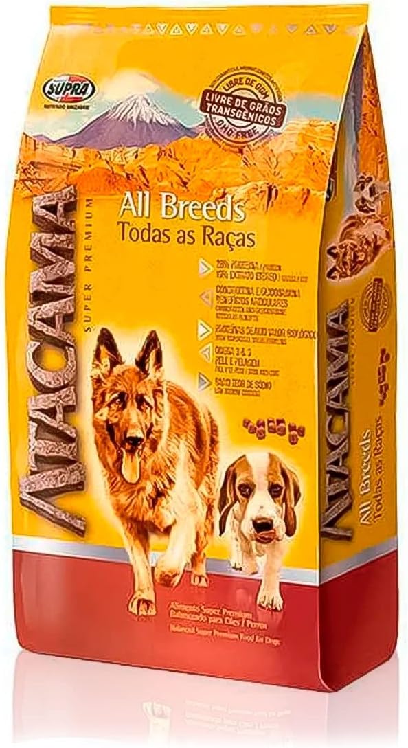 - Pelagem brilhante e pele saudável: Com nutrientes específicos para a pele e pelagem, a Ração Super Premium Atacama ajuda a manter a pelagem do seu cão brilhante e a pele saudável.