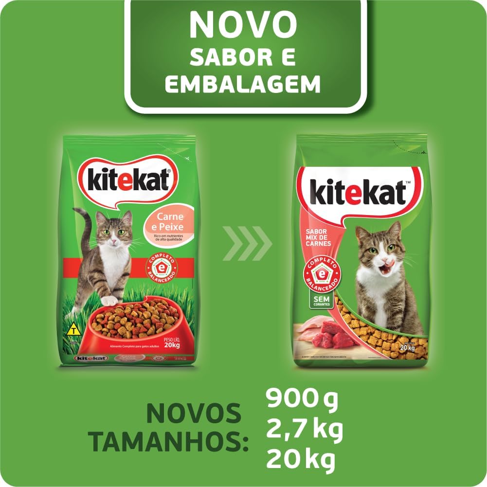 - Sabor Incomparável: Feita com uma mistura de carnes selecionadas, a Ração KiteKat Mix de Carnes vai deixar seu gato lambendo os beiços a cada refeição.