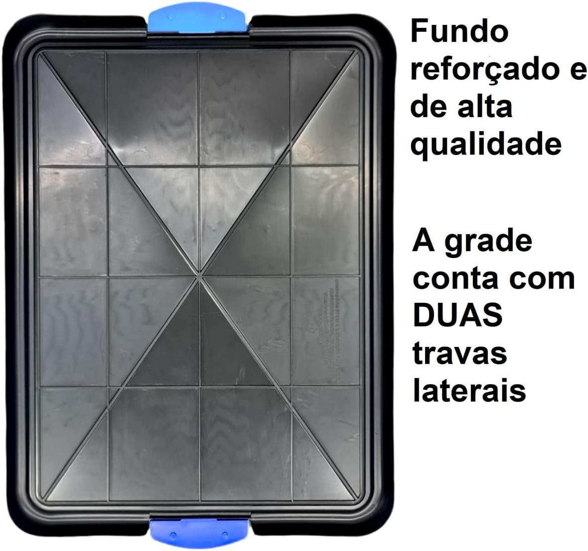 Review: Produto fácil de usar e limpar; encaixa bem o tapetinho por baixo do gradeado. A cor não desbota e o plástico não resseca.