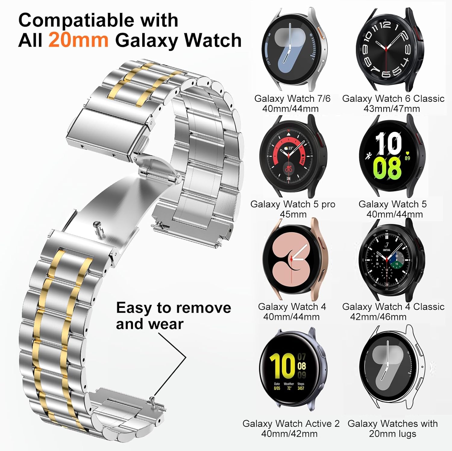 As pulseiras de aço inoxidável da SUPLINK são a escolha perfeita para quem busca elegância, durabilidade e compatibilidade com os modelos mais recentes da linha Samsung Galaxy Watch. Compatíveis com os modelos Galaxy Watch 7, 6, 5, 4 FE, 5 Pro, 6, 4 Classic, 3, Active e outros, essas pulseiras são ideais para quem deseja personalizar o seu smartwatch com um toque de sofisticação.
