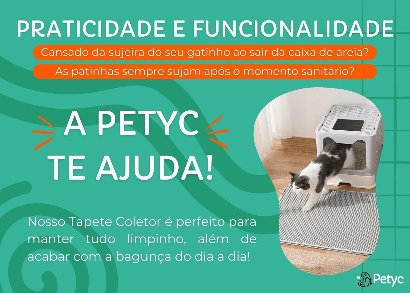 "Tenha mais praticidade na hora de cuidar do seu gato com o Tapete Coletor De Areia PETYC. Garanta o seu agora!"
