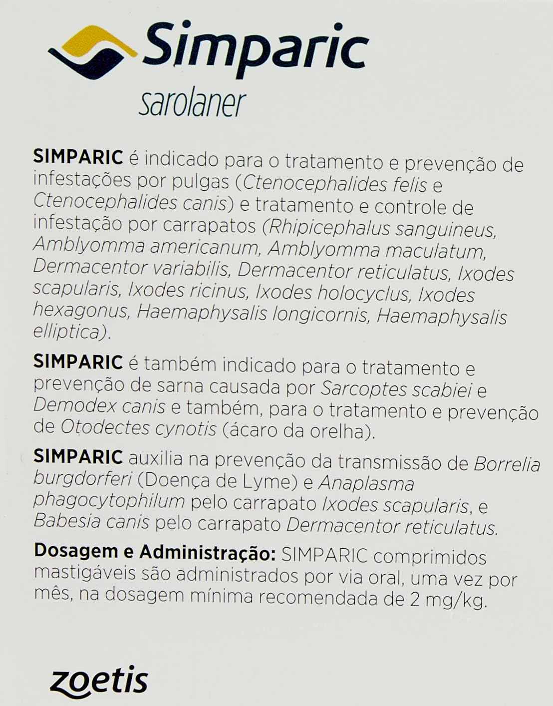 - Qualidade garantida: O Zoetis Simparic 120Mg é um produto de qualidade, desenvolvido por uma marca renomada no mercado veterinário, garantindo a eficácia e segurança para o seu animal de estimação.